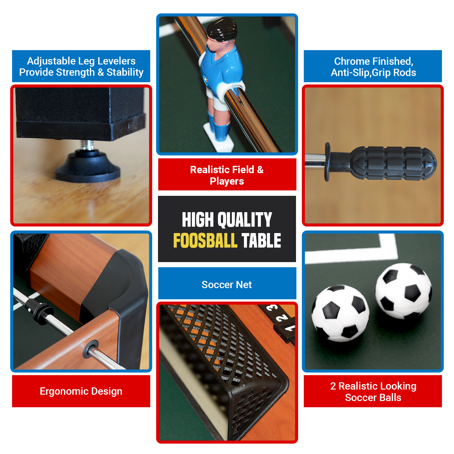 A fan of soccer or not, our foosball will promises to deliver hours of family fun and excitement. The 4-foot table is made from E0 Grade MDF board with a strong and sturdy construction and features stable legs too.