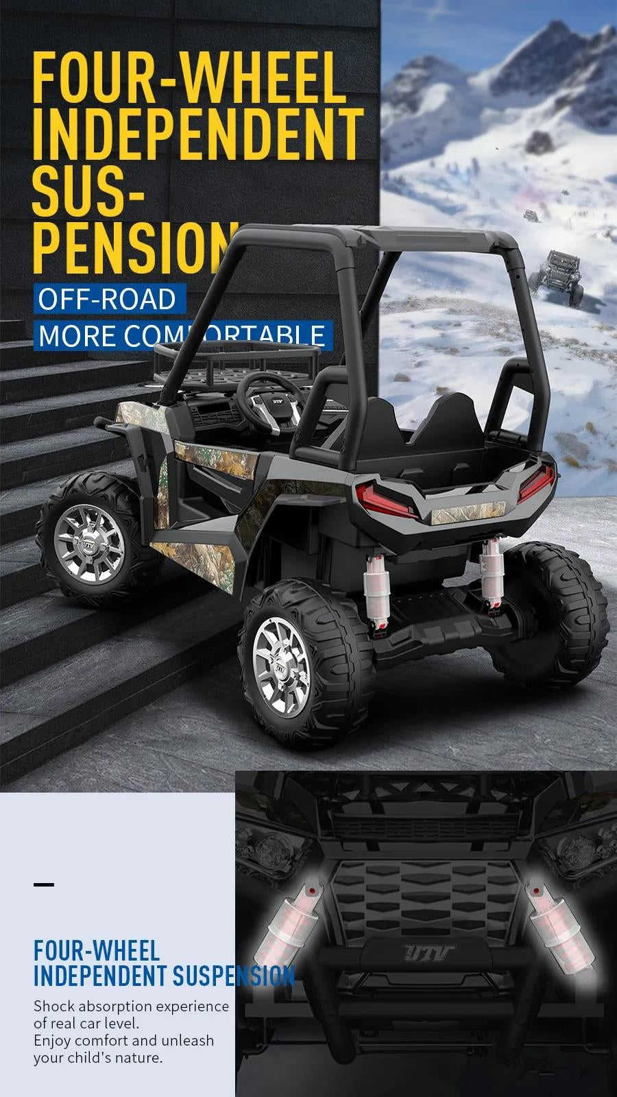 - Powerful Motors: Equipped with two 200W motors, making it one of the most powerful ride-on cars on the market.