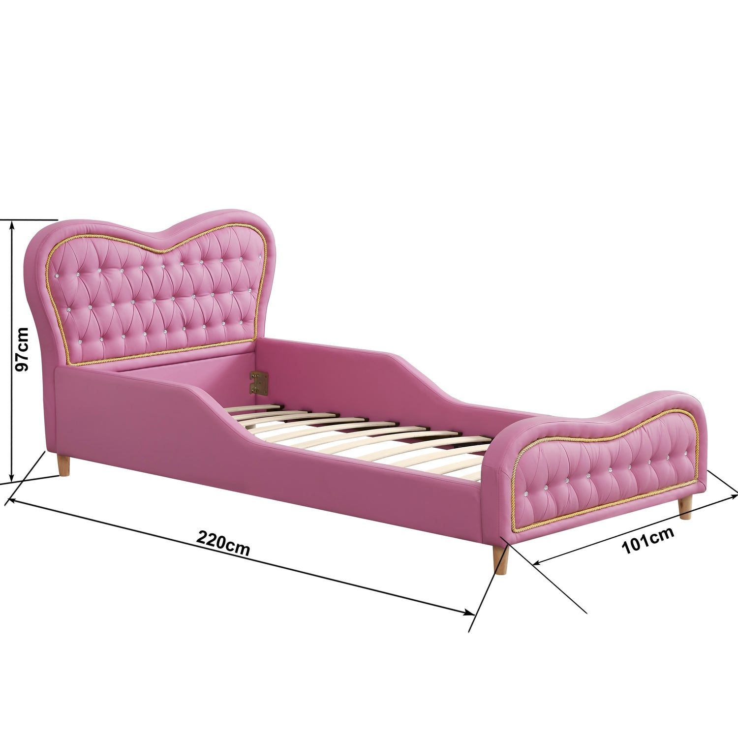 Transform your child's bedroom into a cozy, stylish retreat with the Brooklyn Heart PU Leather Single Upholstered Bed. This elegant pink bed features a charming heart design, adding a touch of whimsy and luxury to any kid's room. Upholstered in premium PU leather, this bed offers a soft, smooth texture that's easy to clean and maintain, ensuring long-lasting beauty and comfort.
