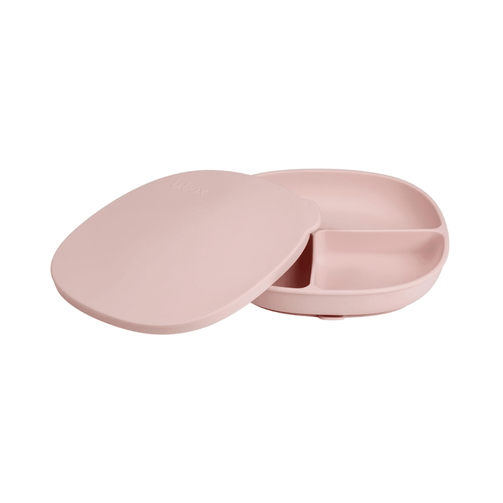 Divide, stick, snack and seal. Our platinum silicone suction plate + lid is a mealtime must-have for transitioning babies and toddlers to independent eating. Designed for convenience, functionality...and style!