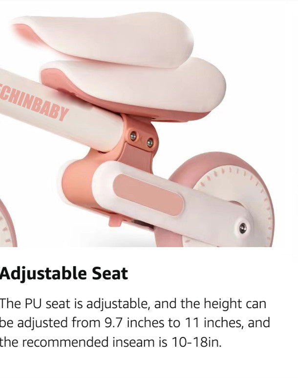 One of the most unique features of the Allobebe Balance Bike is its adjustable (24.5~28cm from the ground) PU leather seat ensures a comfortable and secure ride.