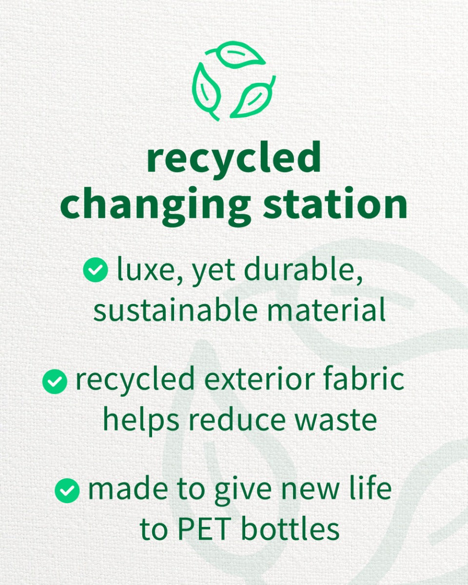 An eco-friendly take on our popular changing station, the Envi Luxe Pronto® features lightweight— yet sturdy—exterior fabric made from 100% recycled PET bottles to help protect our planet by reducing waste. A must-have changing tool for Earth-conscious parents, the ultra-convenient clutch has a wipe-clean zip-off changing pad and translucent wipes case. A large mesh pocket holds up to four diapers plus creams and other essentials, while the front-zip pocket is the perfect spot for keys, cell phone and other personal items.
