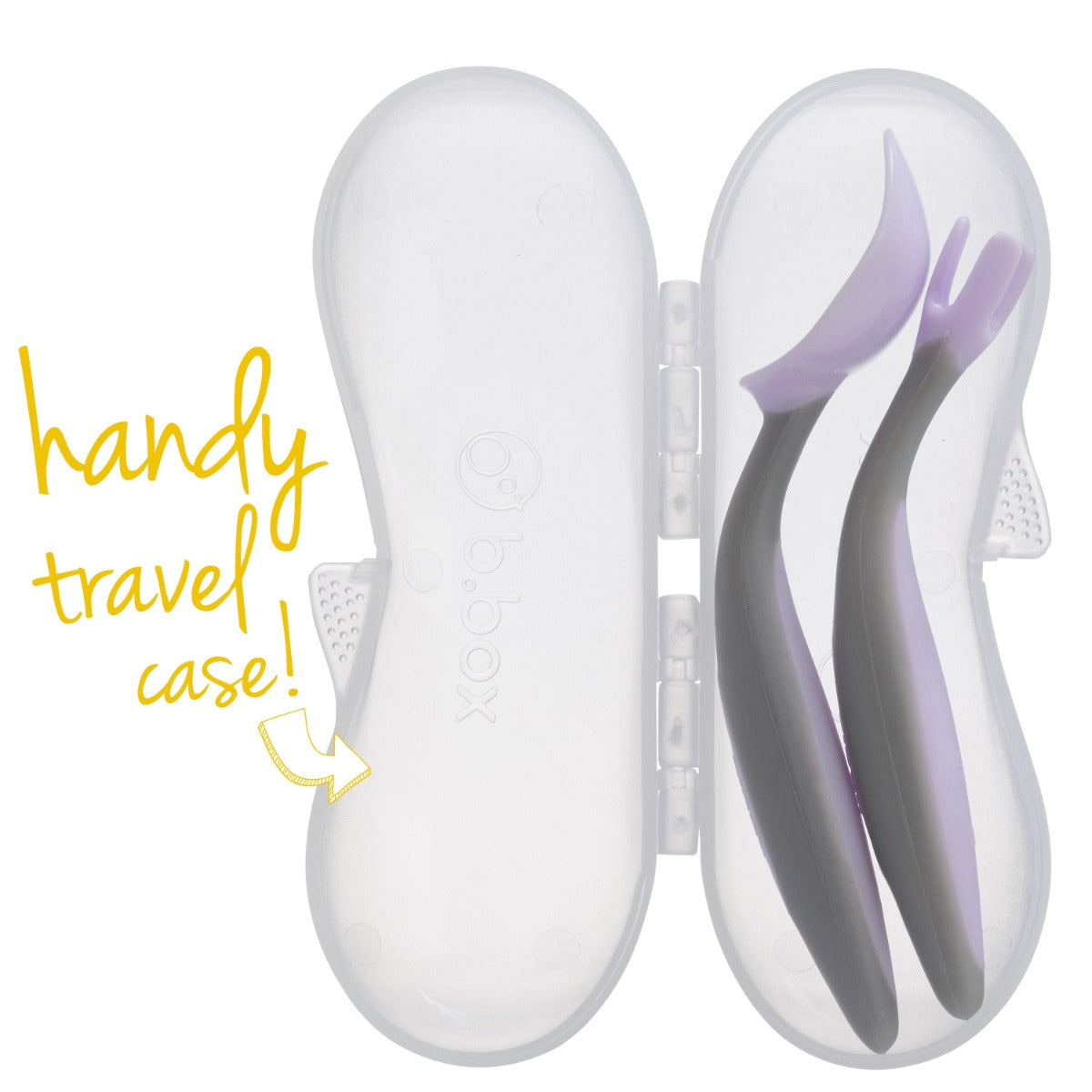 Our unique flork has been designed to fit the size and shapes of little mouths. Its curved blunt prongs are gentler (and safer) on little mouths and gums. Set comes complete with a handy travel case to keep utensils clean before mealtime on the go, and after to prevent soiling in nappy bags or hand bag.