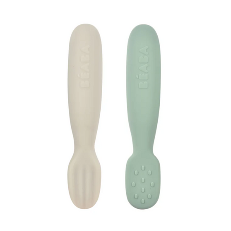Beaba Silicone Pre-Spoons 2 Pack - Sage Green/Velvet Grey