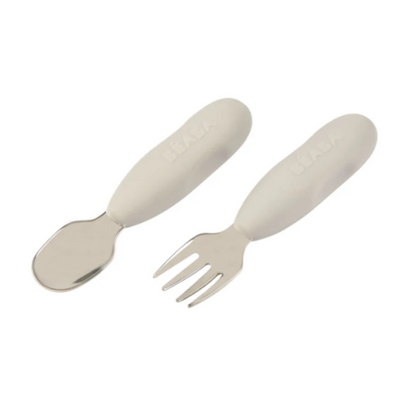 Beaba Fork & Spoon Stainless Steel Pre-Cutlery - Velvet Grey