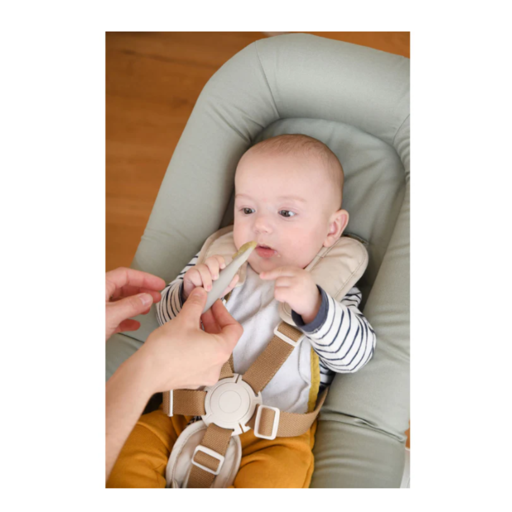 - Use from 4 months, with an adult to familiarise them with the spoon and their first foods. From 6/8 months, on their own to gradually gain independence.
