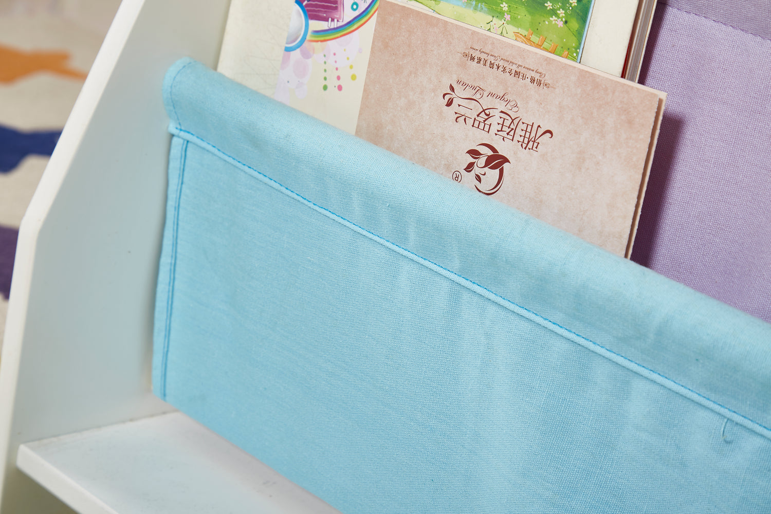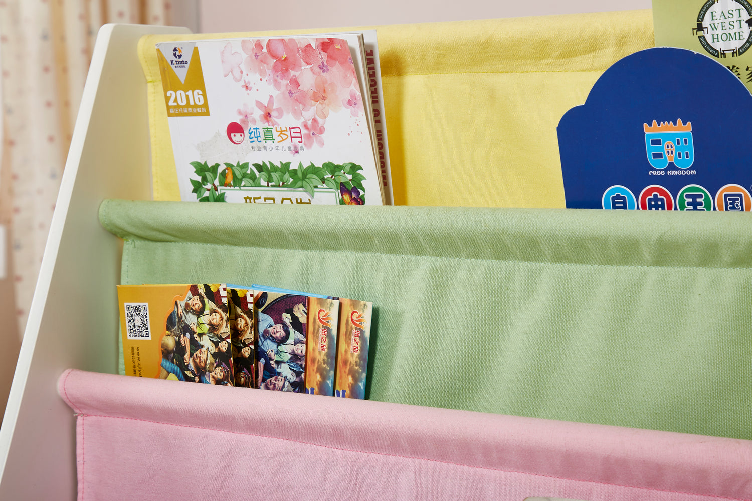 • 4 Colorful Canvas Pockets - Front-facing book display (kids see covers, not spines)