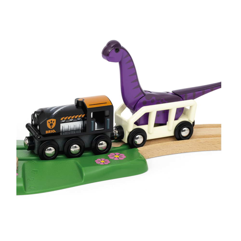 Three playful dinosaurs are included in this playset, all featuring colourful designs, unique moving parts and classic BRIO magnets to interact with the world around them.