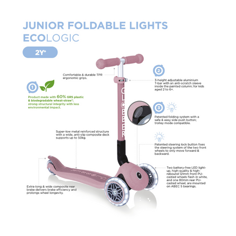 Globber ECOLOGIC JUNIOR Foldable Scooter with Lights - Blueberry