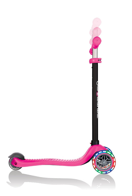 Globber Primo Foldable Scooter with Light and Anodized Tbar - Neon Pink