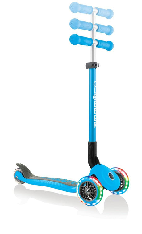 Globber Primo Foldable Scooter with Light and Anodized Tbar - Sky Blue