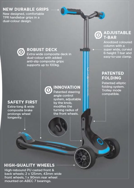 Globber Primo Foldable Scooter with Light and Anodized Tbar - Blue