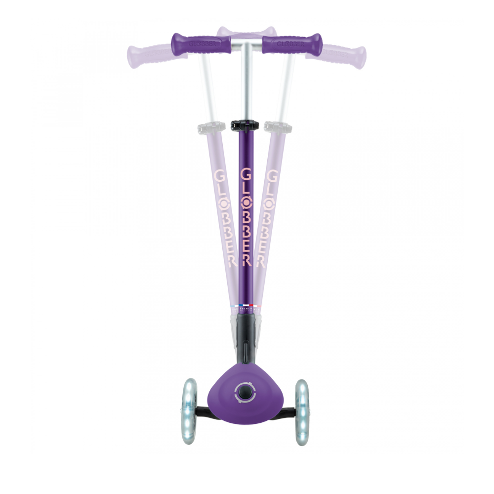 Globber PRIMO FOLD PLUS LIGHTS Scooter V2 - Purple / Pastel Pink: 3-Wheel Kids Kick Scooter Adjustable Height T-Bar - for Boys and Girls 3+