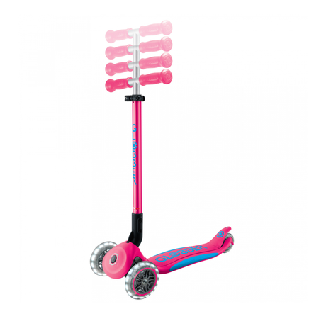 Globber Primo FOLD PLUS LIGHTS Scooter - Fuchsia Pink / Sky Blue