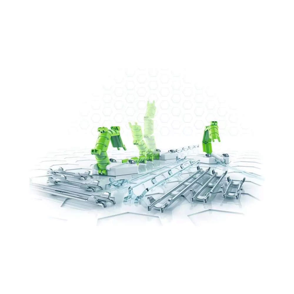 The Extension Bridges contains many exciting components to extend the marble run. Combined with any GraviTrax starter set, the Extension Bridges brings even more possibilities and ball fun to the GraviTrax universe. How much longer can the ball roll with the new elements?