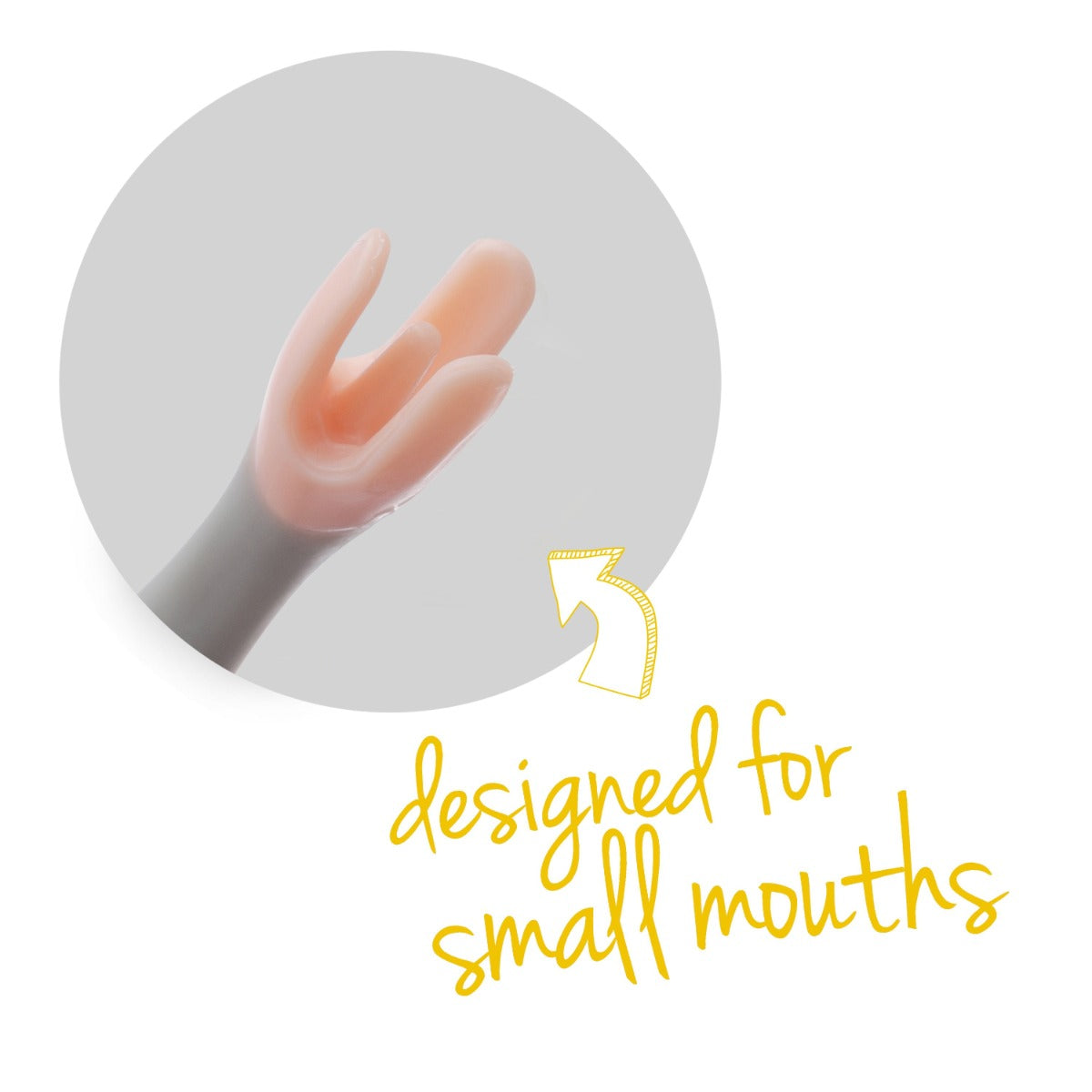 The unique deep scoop spoon shape and angled handles encourages correct hand to mouth positioning, and helps to contain food within the spoon as bubs practices bringing it to his/her mouth, which means more food makes it to the mouth and less mess!