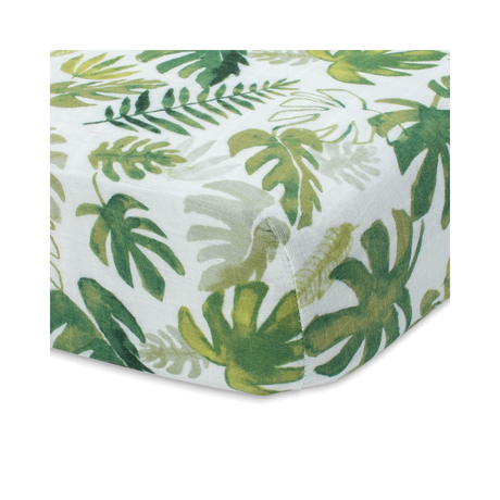 Little Unicorn Muslin Fitted Cot Sheet - Tropical Leaf