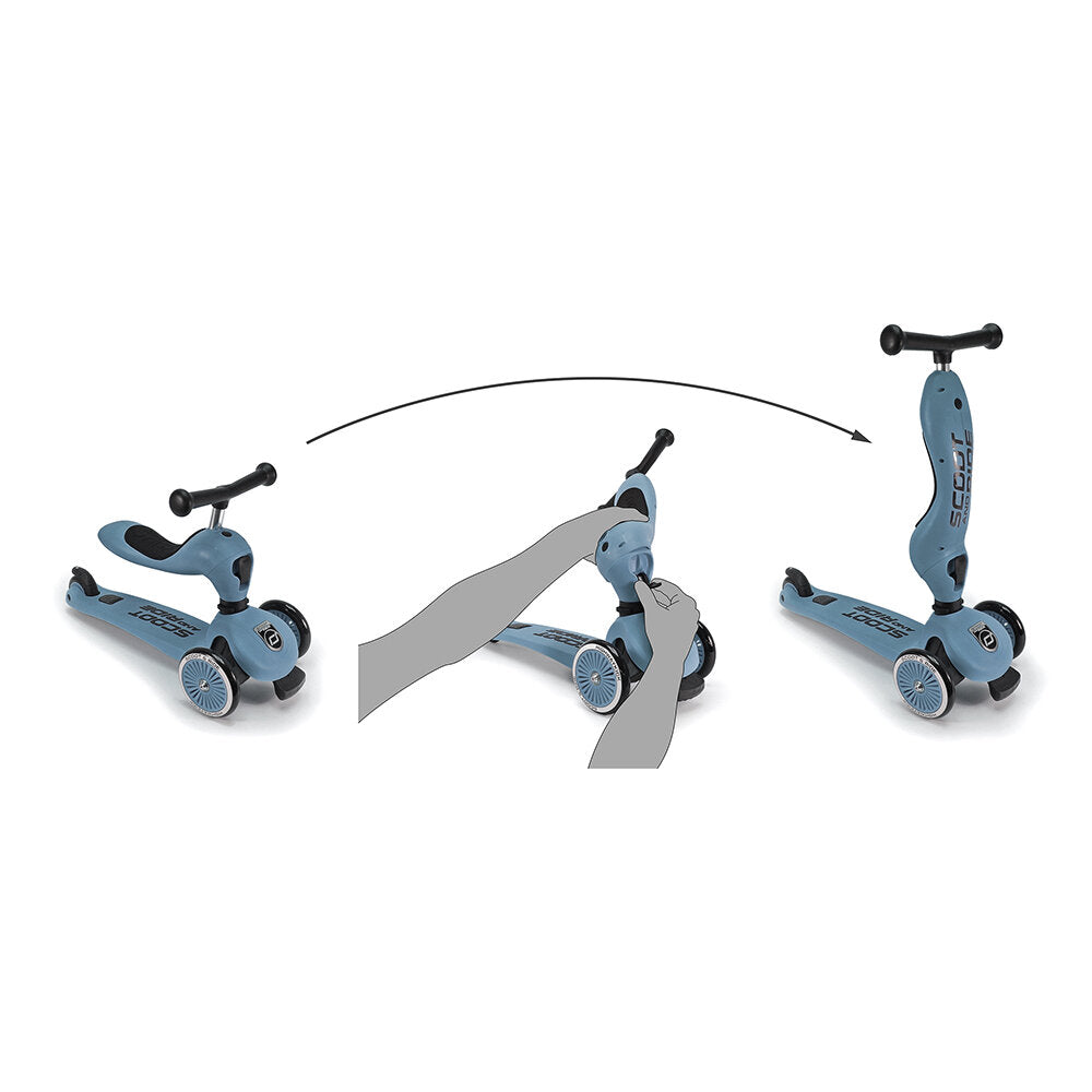 The Highwaykick 1 is a marvel of adaptability, growing seamlessly with your child. This 2-in-1 kickboard with a seat is the epitome of versatility, transforming effortlessly from a seated ride-on for the littlest adventurers to a stand-up scooter for older explorers. No tools? No problem! Adjusting the seat height or switching to scooter mode is a breeze, ensuring that the fun never stops. This scooter isn’t just a toy; it's a long-term companion, evolving with your child’s needs and skills, making every ride a step towards growth and independence.