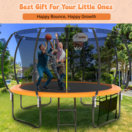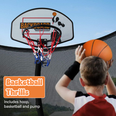 ALL 4 KIDS 12 FT Jump Zone Spring Trampoline with Basketball Board