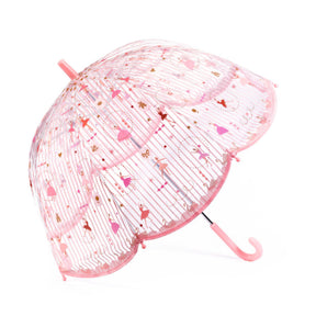 A chic and practical umbrella with ballet dancer illustrations. Its transparent design enables the child to see where they are going, and its manual opening fitted with a protection system means that it can be opened and closed without pinching the childs fingers. A colourful accessory, ideal for brightening up outings in the rain!Dimensions when open: 68 x 70 cm diameter.