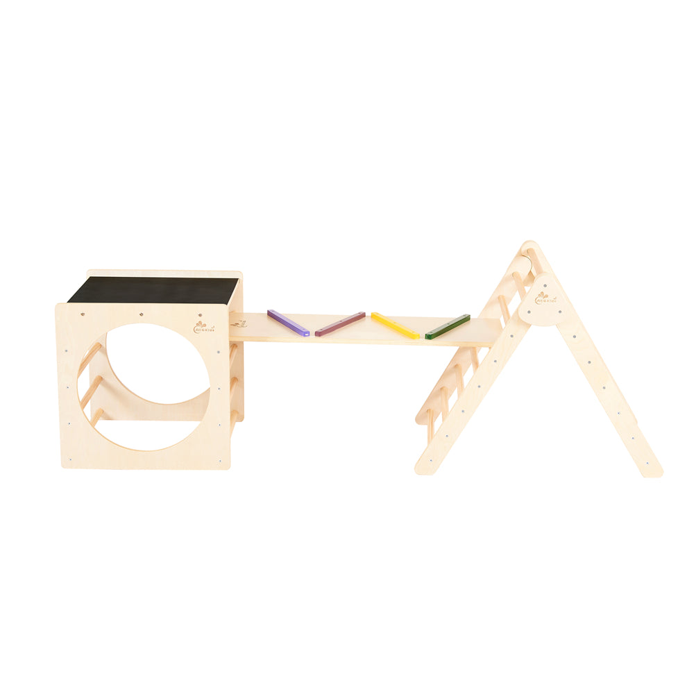 This Montessori-designed climbing structure encourages babies and toddlers to gain confidence, balance, stability, and strength at their own pace.