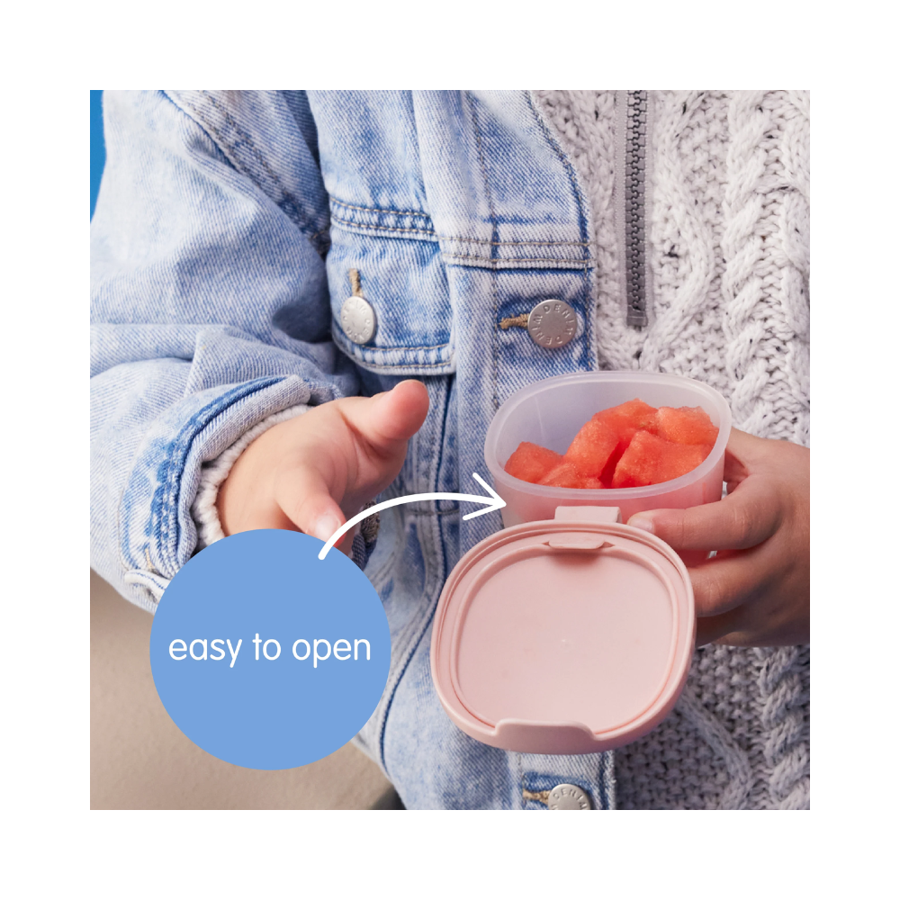 No more lost lids! Keep your child’s favourite snack foods fresh and sauces sealed with our handy snack tub 3 pack featuring a unique hinged lid with silicone seal. Simply snack-tastic!