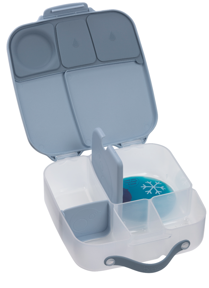 The custom divider slides across enabling parents to adjust the compartment size as they need, or remove it to fit a whole banana or wrap.