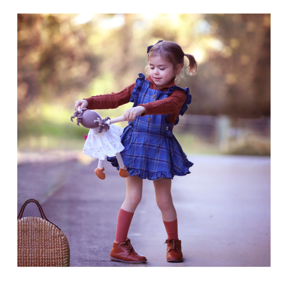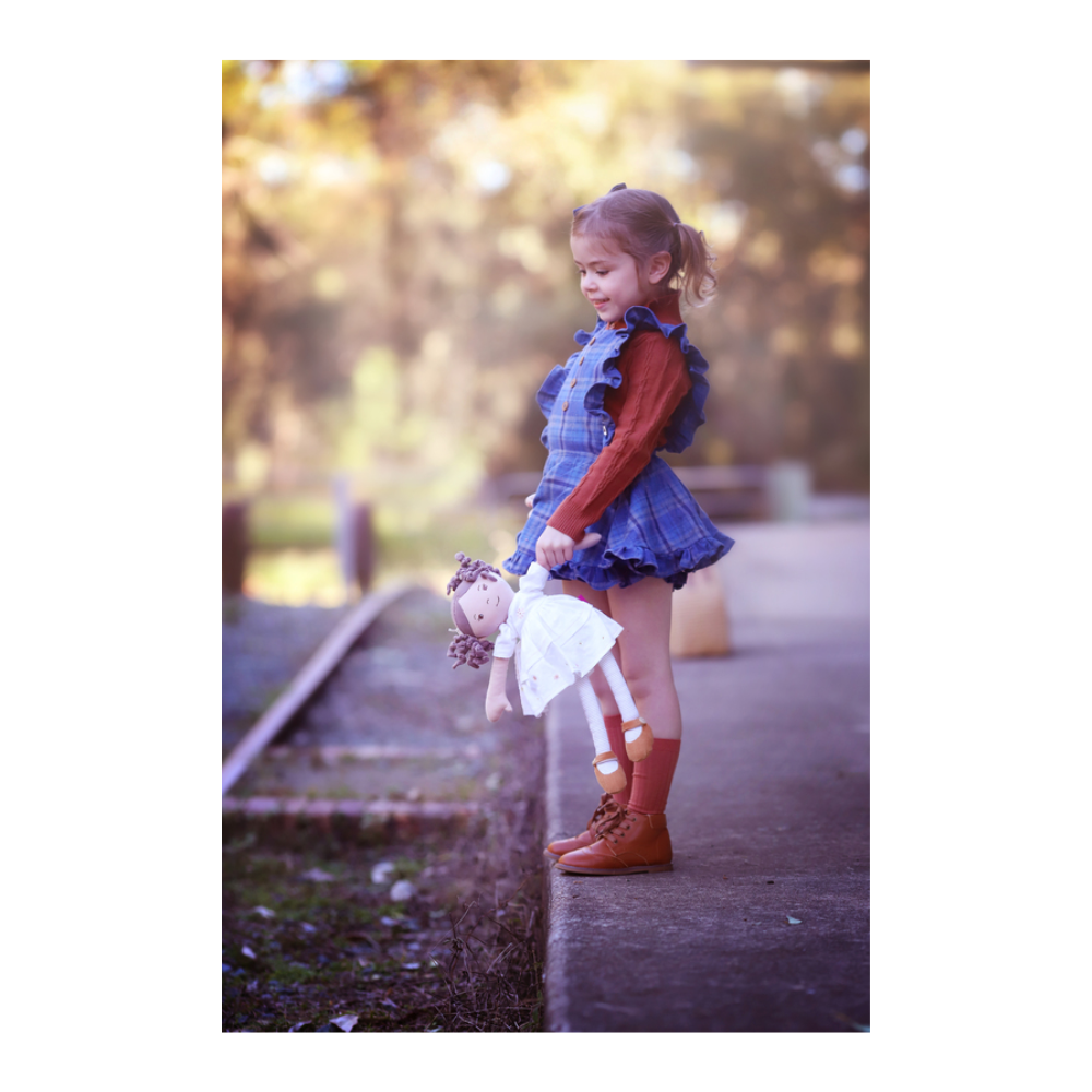 Cecilia is dressed to impress. Wearing her gorgeous white linen dress and brown shoes, she is ready for a tea party. She has lovely brown hair. Cecilia is part of the Linen Girls range.