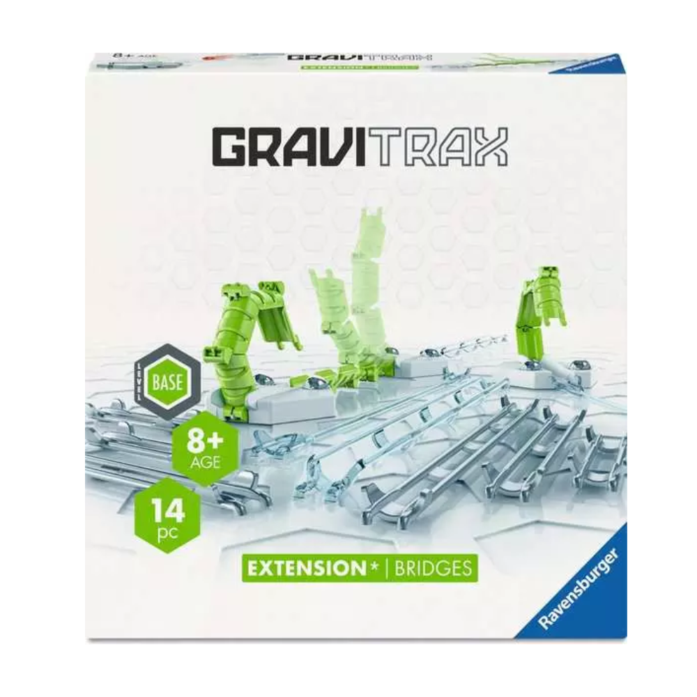 The Extension Bridges contains many exciting components to extend the marble run. Combined with any GraviTrax starter set, the Extension Bridges brings even more possibilities and ball fun to the GraviTrax universe. How much longer can the ball roll with the new elements?