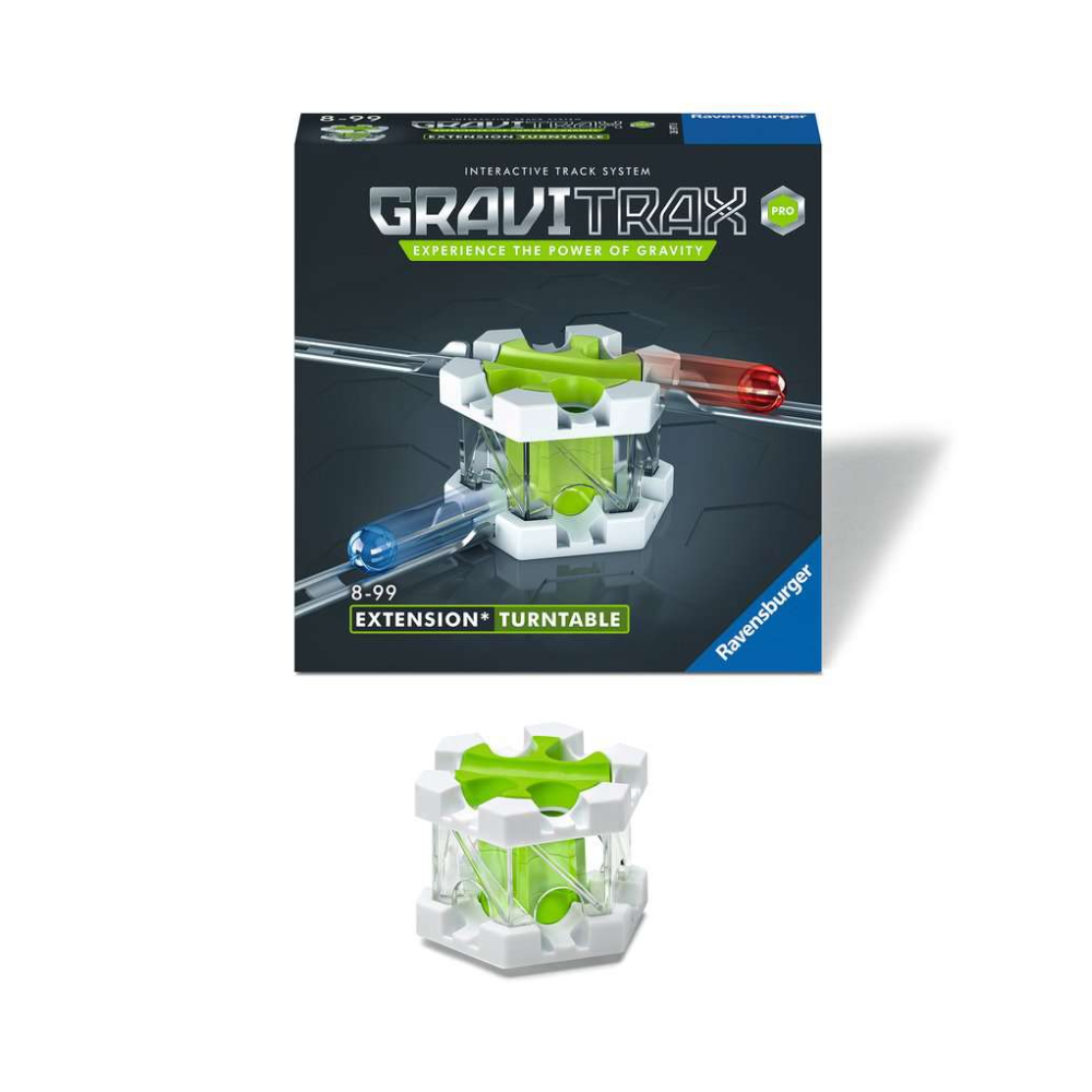 Rev up your marble run with the “GraviTrax PRO Turntable”! As a marble falls in, the “Turntable” changes the marble’s direction one track over with a cool click, giving you more control over your marble’s direction. Combine the “Turntable” with the “GraviTrax Pro Starter-Set” or any “Starter-Set” and take your track to a new level, chock-full of fun obstacles, twists and stunts. Explore the endless possibilities and experience the power of gravity and educational fun today!