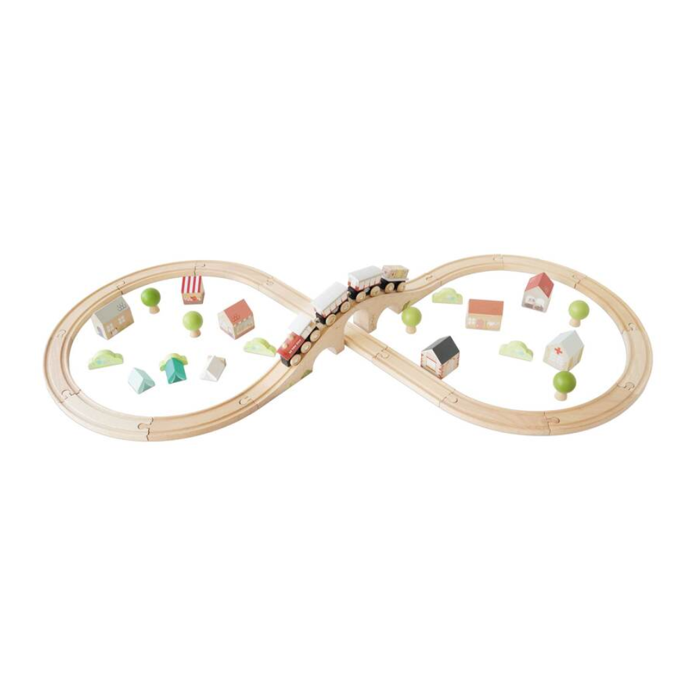 Perfect for eco-conscious parents, it's made from FSC®-certified wood and contains 40 pieces to inspire endless role-playing possibilities. With a figure-of-eight track design, three arched stone bridges, and a range of highly detailed buildings including a station, market, hospital, and farmhouse, your little one will love creating their own mini world.