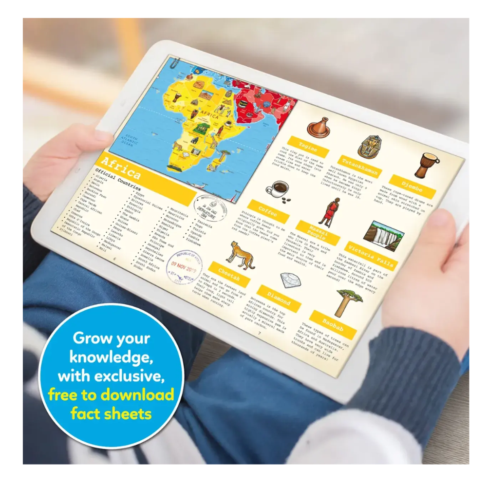 Explore countries and continents of the world, discovering fascinating landmarks, animals and more!