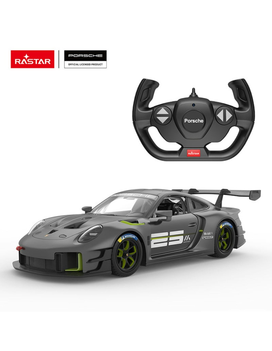 Get ready to experience the adrenaline-pumping excitement of driving a high-performance sports car with the Rastar Porsche 911 GT2 RS Clubsport 25 Grello Remote Control Car. This stunning replica captures the iconic design and power of the Porsche 911 GT2 RS, bringing it to life in a detailed 1:14 scale model. With authentic car styling, an injection-molded body, and a sleek grey finish, this RC car is a must-have for Porsche enthusiasts and remote control car lovers alike.