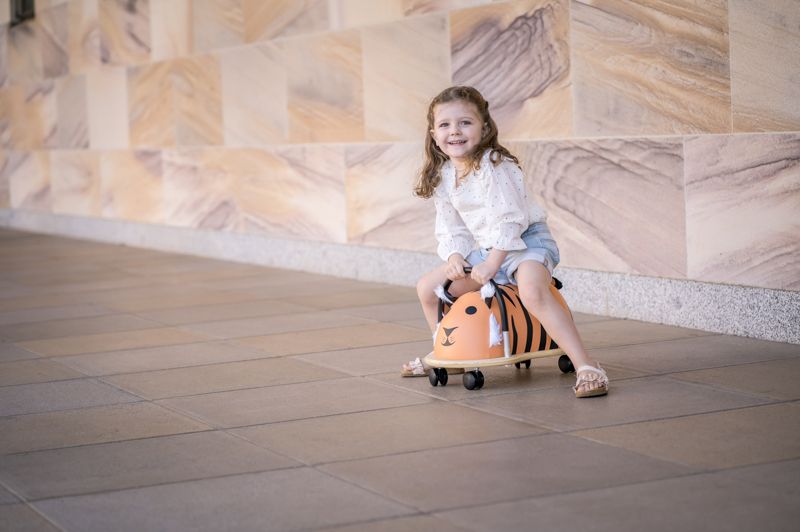 The Wheely Bug Tiger offers more than just fun; it provides a comfy, secure ride. The padded body ensures that your little explorer enjoys every journey, big or small. It's entirely multidirectional, allowing your child the freedom to roam wherever their curiosity takes them, while also helping to strengthen their legs and motor skills. It's a playful way to explore and grow!